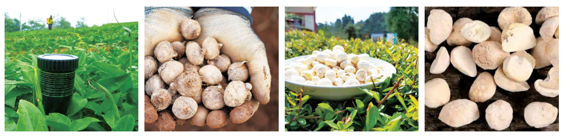 赫章半夏外觀特征明顯,產(chǎn)品質(zhì)量特點突出。外形呈白色或淺黃色,質(zhì)堅實,斷面潔白;粉性較足,富含揮發(fā)油、脂肪含量少;尤其多含 生物堿,備受醫(yī)藥專家推薦。秋季采挖,曬干入藥,炮制品有清半夏、法半夏、姜半夏、半夏曲、竹瀝半夏等。味辛,性溫,可燥濕化痰,降逆止嘔,消痞散結(jié),外用消腫止痛,廣泛用于治療濕痰、嘔吐、反胃、咳嗽、痰多、頭痛失眠等,是上好的中藥材原料。
