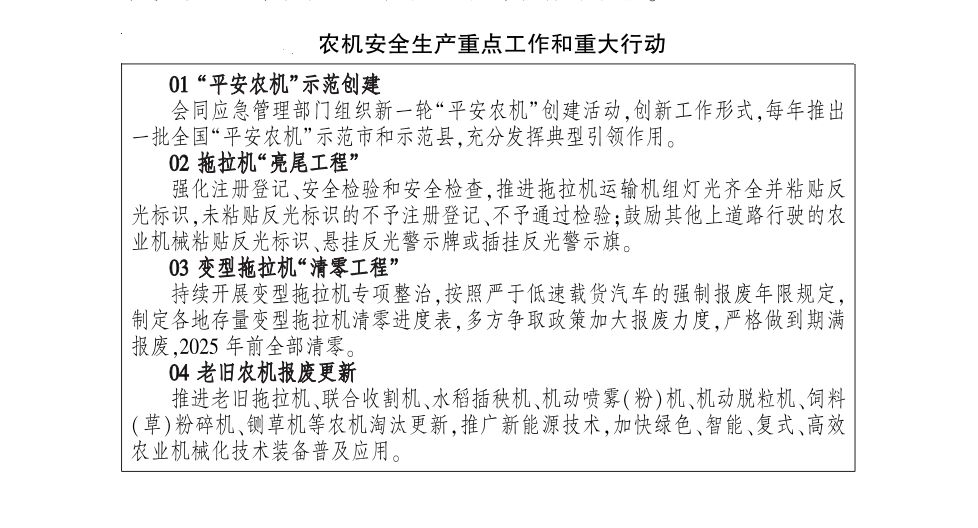 “十四五”農(nóng)機安全生產(chǎn)重點工作和重大行動