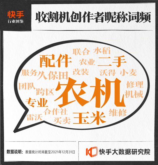 收割機相關創作者遍布大江南北。快手上,黑龍江、山東和河北的收割機相關創作者數量排名省份前三。除了收割機手個人帳號,還有農業合作社、農機廠商、二手農機交易等機構類帳號,也會分享收割機相關教學、介紹視頻。
