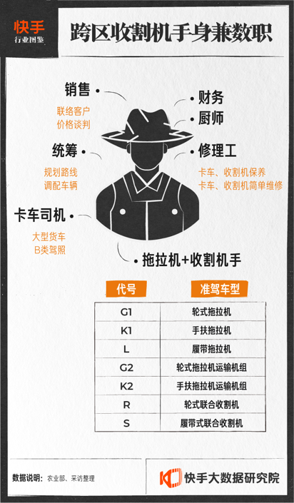 不同跨區收割機手,工作時段也有所不同——比如受訪的三位快手用戶,隗小孬每年的跨區時間長達8個月,芷琪(快手ID:150507002)約為7個月,小黑妹(快手ID:172802139)則是6個月左右。