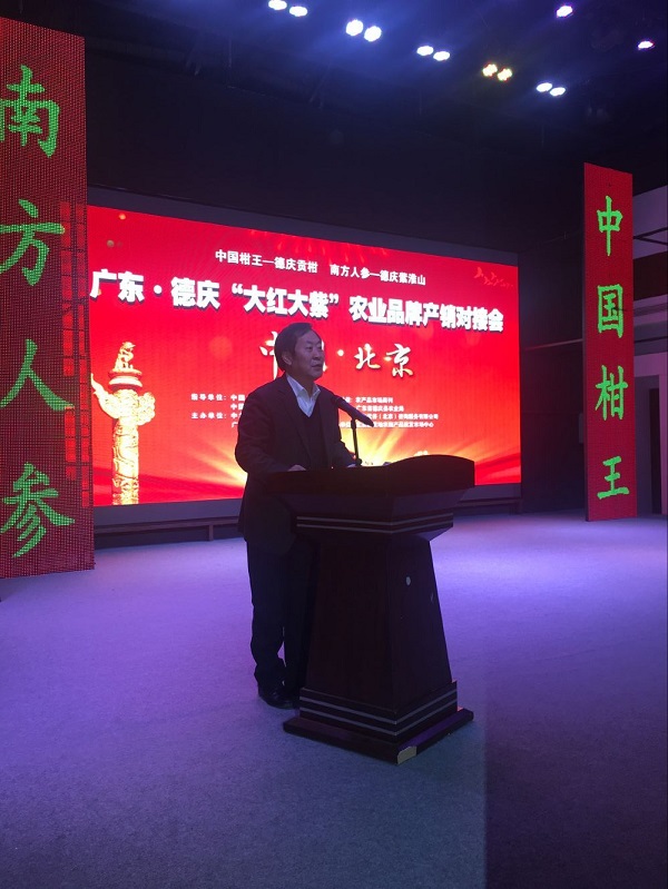 2017年1月14日,廣東·德慶“大紅大紫”農業品牌產銷對接會在北京新發地農副產品批發市場隆重舉行。國務院參事室特約研究員、農業部原黨組成員、中國農產品市場協會會長張玉香,農業部優質農產品開發服務中心、農業部農產品質量安全中心主任張華榮,中國農村雜志社黨委書記、社長王太,北京新發地農產品批發市場總經理張月琳,廣東省肇慶市委常委、統戰部長、德慶縣委書記朱宜華,以及德慶縣相關部門領導出席了活動。來自廣東省德慶縣的種植大戶、合作社代表、電商平臺與北京新發地農產品批發市場的經銷商代表現場進行了對接。