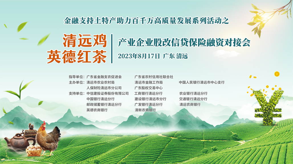 活動由廣東省金融支農促進會、廣東省農村信用社聯合社指導,清遠市農業農村局、清遠市金融工作局、中國人民銀行清遠市中心支行、人保財險清遠市分公司、廣東股權交易中心主辦,中信建投證券股份有限公司、中國工商銀行清遠分行、中國農業銀行清遠分行、中國銀行清遠分行、中國建設銀行清遠市分行、交通銀行清遠分行、中國郵政儲蓄銀行清遠市分行、廣發銀行清遠分行、清遠農村商業銀行、清新農村商業銀行、英德農村商業銀行支持。