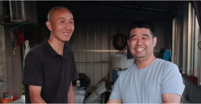 翼選業務負責人唐樹勇(右)回訪常州葡萄種植戶徐建峰(左)