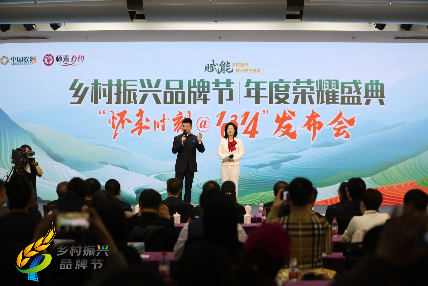 “年度榮耀盛典‘懷來時刻@1314’文創(chuàng)產(chǎn)品及‘鄉(xiāng)村振興品牌節(jié)’形象標(biāo)識發(fā)布儀式”作為八大驚喜的壓軸環(huán)節(jié)重磅揭曉。為提升鄉(xiāng)村振興品牌節(jié)的品牌辨識度和影響力,中國農(nóng)影向社會公開征集形象標(biāo)識(LOGO)設(shè)計方案,收到了近百份設(shè)計投稿,經(jīng)過網(wǎng)絡(luò)征集、網(wǎng)友推薦、專家評審,最終確定了“鄉(xiāng)村振興品牌節(jié)”形象標(biāo)識。張家口長城釀造集團品牌推廣部部長段珂、中糧長城技術(shù)部副主任趙曉寧共同登臺,發(fā)布了鄉(xiāng)村振興品牌節(jié)年度榮耀盛典“懷來時刻@1314”文化創(chuàng)意產(chǎn)品。