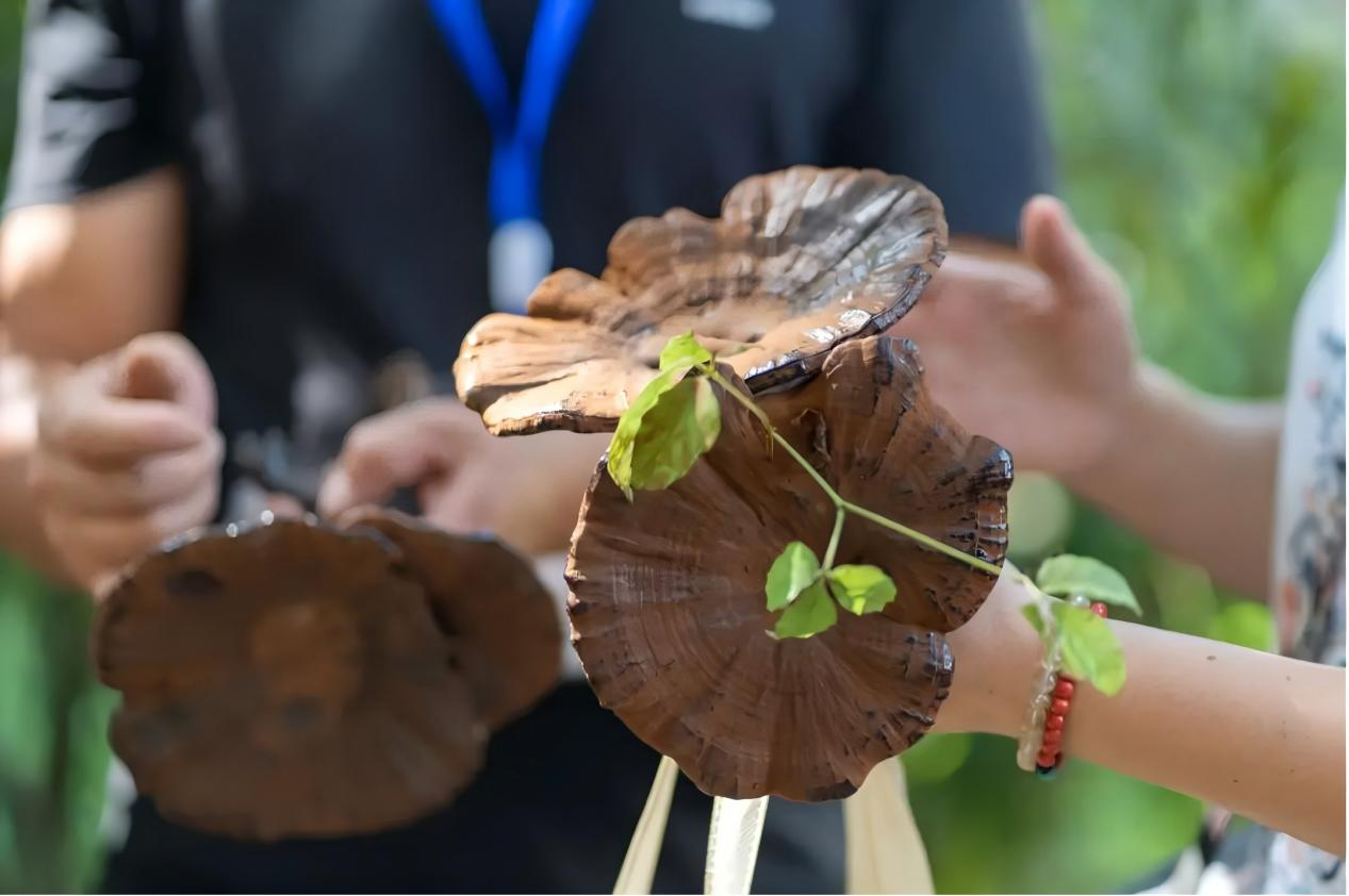 在萬安鎮捷文自然教育基地,游客們觀賞了解靈芝文創產品、品味靈芝養生宴、參與靈芝露營音樂節,盡情享受別樣的周末休閑時光。步入“靈芝文創坊”,各式各樣的靈芝文創產品映入眼簾,從精致的靈芝造型擺件到實用的靈芝護膚品,每一個產品都蘊含深厚的靈芝文化。在捷文村千畝靈芝基地,學生們可以近距離參觀紫靈芝的生長環境,體驗親手采摘的樂趣,感受紫靈芝的文化和魅力。