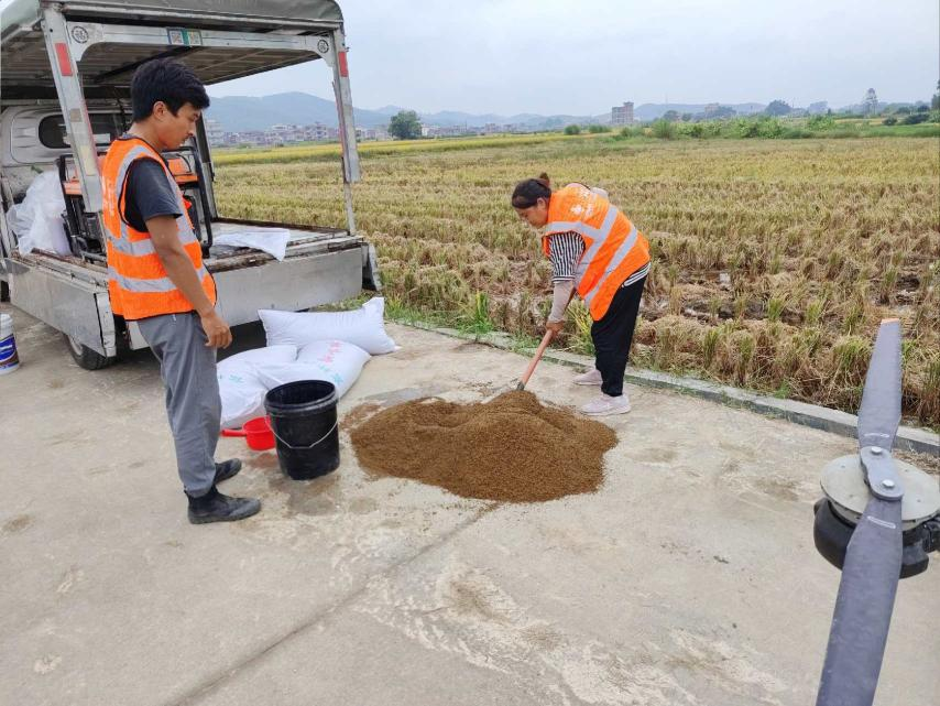 云浮羅定供銷優(yōu)禾農(nóng)業(yè)科技服務(wù)有限公司飛播前進(jìn)行拌種處理