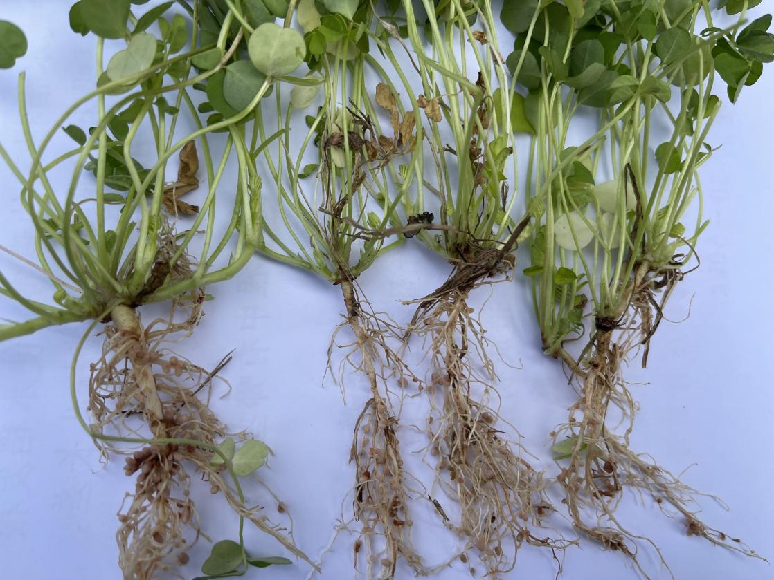 林日強(qiáng)薅起一把紫云英,指著根上一個(gè)個(gè)小顆粒說:“奧秘就在這些小顆粒上。這小顆粒,學(xué)名叫根瘤。它們就像一個(gè)個(gè)小小的氮肥工廠,能吸收空氣中的氮固定在植株體內(nèi),翻壓還田后把氮素養(yǎng)分釋放到土壤里。”
