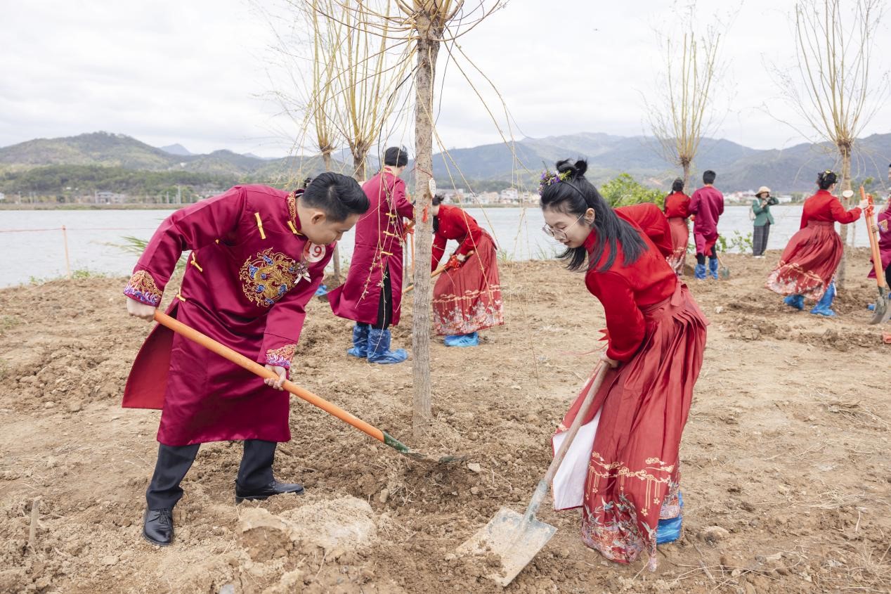 活動當天,還舉行了植樹活動,在美麗的東江邊,新人們共同種下“同心樹”,這場以生態為底色的集體婚禮,正悄然重塑嶺南鄉村的婚嫁文化。