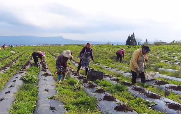 當?shù)剞r(nóng)村勞動力在大方迷迭香種植示范基地耕作
