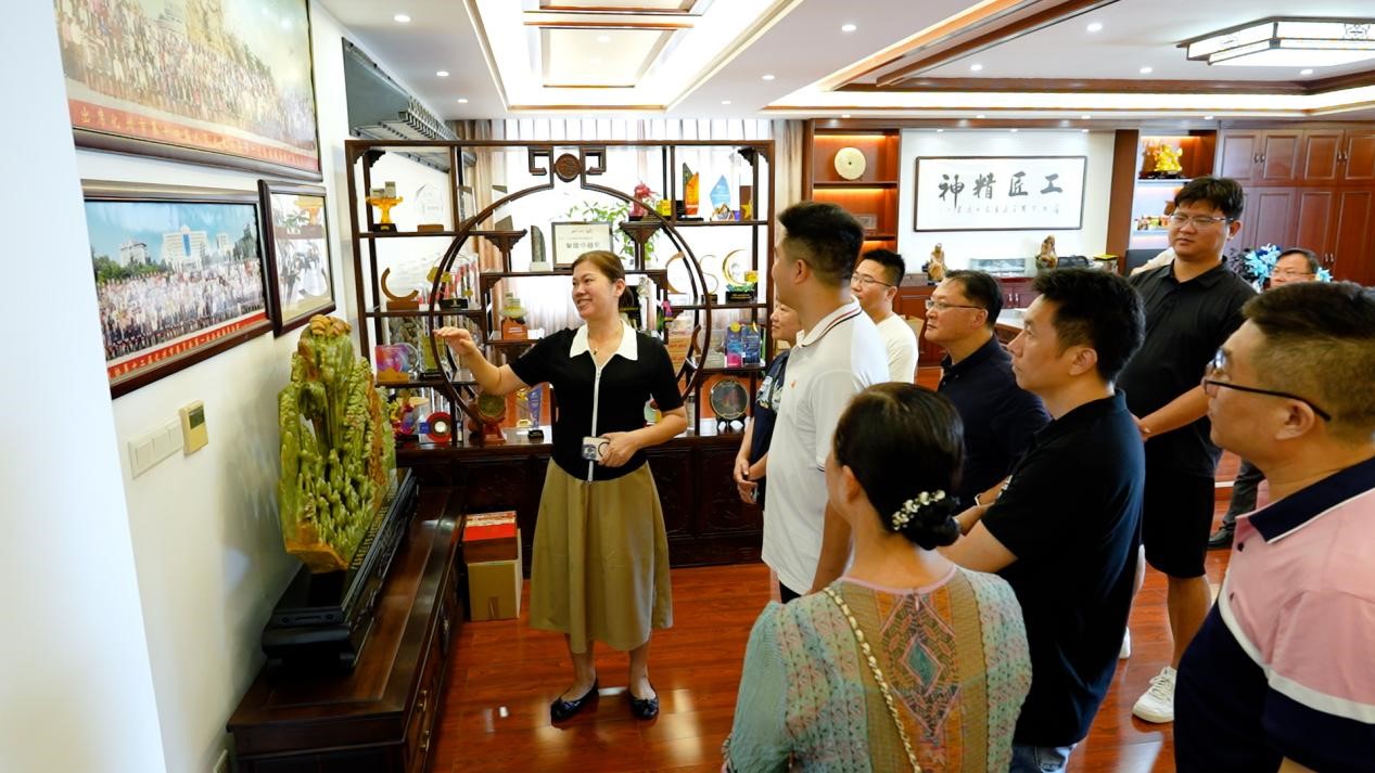 新會陳皮行業協會考察團踏入中國化橘紅博覽館,便仿若開啟一場跨越時空的溯源之旅。踏入館內,歷史文化展區率先映入眼簾,古舊的本草典籍、泛黃的方志史料,靜靜訴說化橘紅自千年前被發現、應用的前世故事。從古代醫家對其藥用價值的初次記載,到逐步成為宮廷貢品,化橘紅憑借卓越的止咳化痰功效,在中醫藥長河中嶄露頭角。一旁陳列的脫青木桶、切片石刀等傳統炮制器具,凝結著先輩智慧,展示化橘紅從鮮果到入藥的繁復工序,化橘紅非遺技藝傳承千年,每一道流程都承載著對品質的執著堅守 。富有創意的裝置、設計即展示著化橘紅的今生和未來。“化州將文化植入產業的深度令人震撼。”新會陳皮行業協會副會長關炳華在留言簿寫道。