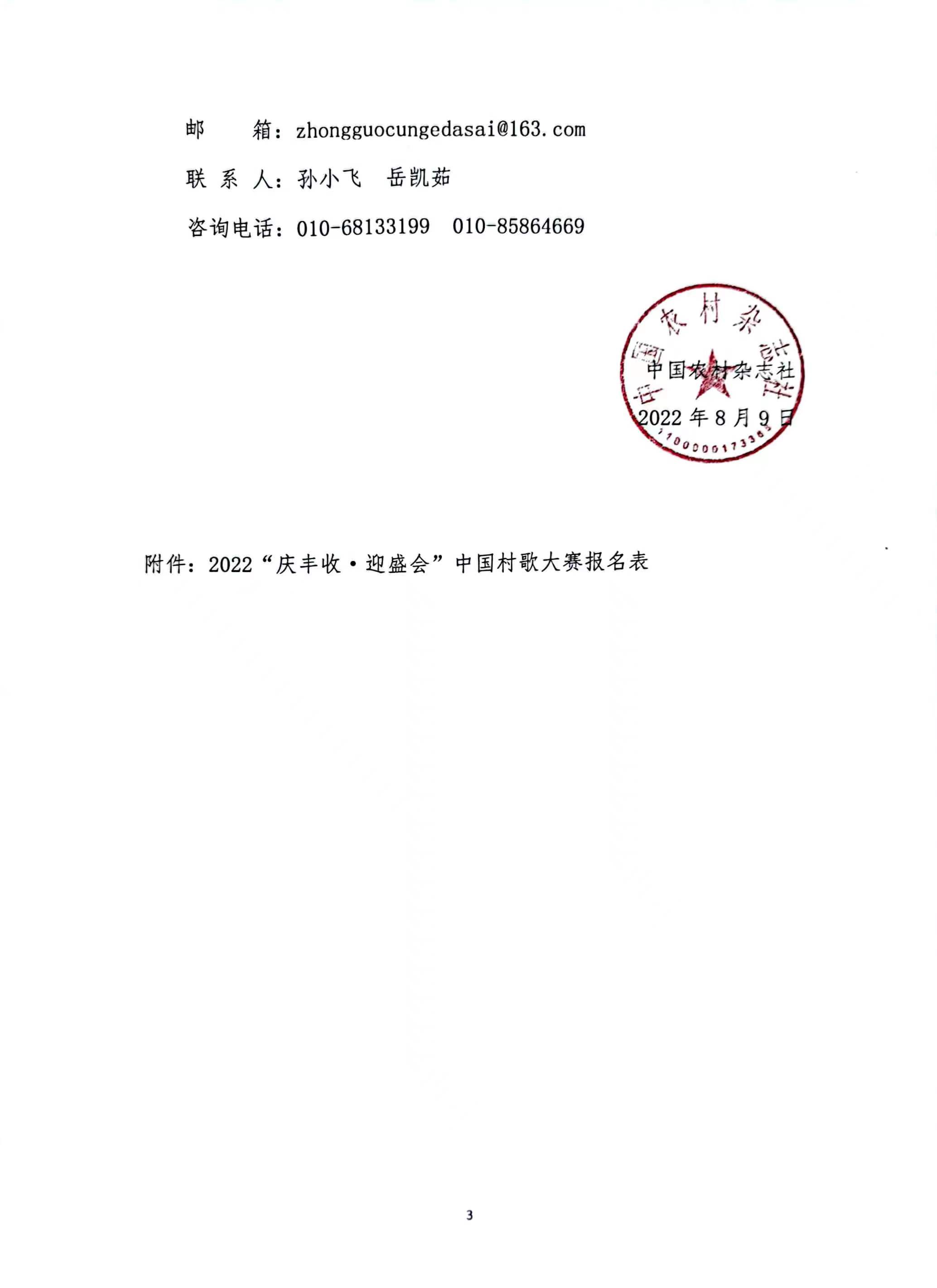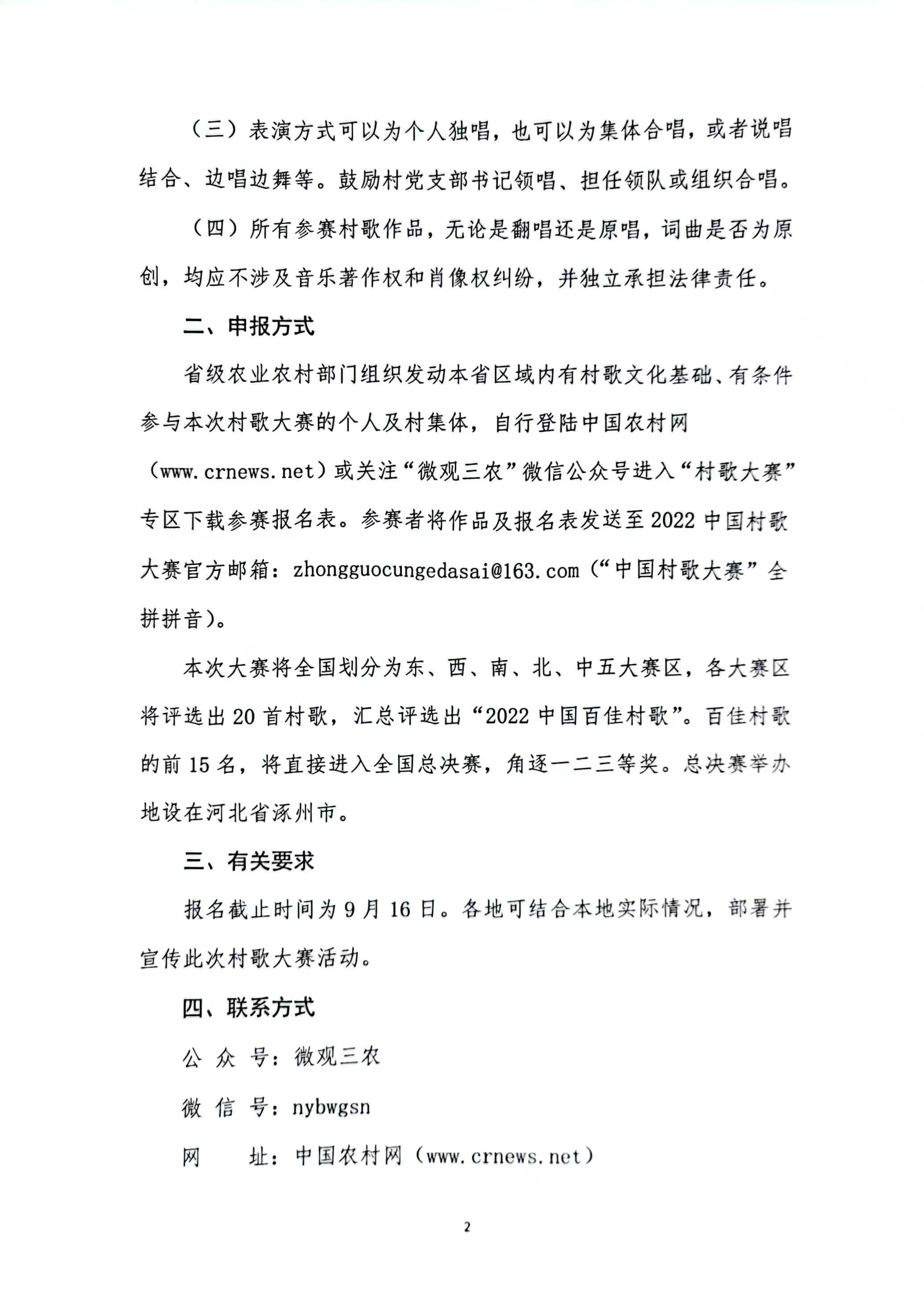 關(guān)于組織參加2022“慶豐收·迎盛會”中國村歌大賽的函