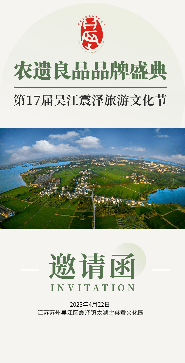 “農遺良品”品牌盛典暨第十七屆吳江震澤旅游文化節活動將于2023年4月22日在江蘇省蘇州市吳江區震澤鎮太湖雪桑蠶文化園舉辦。