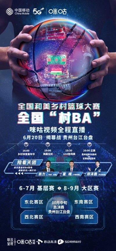 根據官方安排,全國和美鄉村籃球大賽(村BA)將分為三個階段展開,6-7月將進行第一階段的基層賽,第二階段大區賽將在8-9月進行,第三階段于10月在貴州省臺江縣舉辦首屆全國和美鄉村籃球大賽(村BA)總決賽。作為官方持權轉播方,中國移動咪咕將深度參與到賽事轉播中,全程見證全國村BA盛況。
