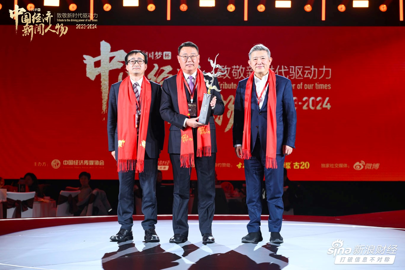 第十二屆全國(guó)政協(xié)副主席劉曉峰、國(guó)務(wù)院國(guó)資委新聞中心副主任張義豪為其頒獎(jiǎng)。
