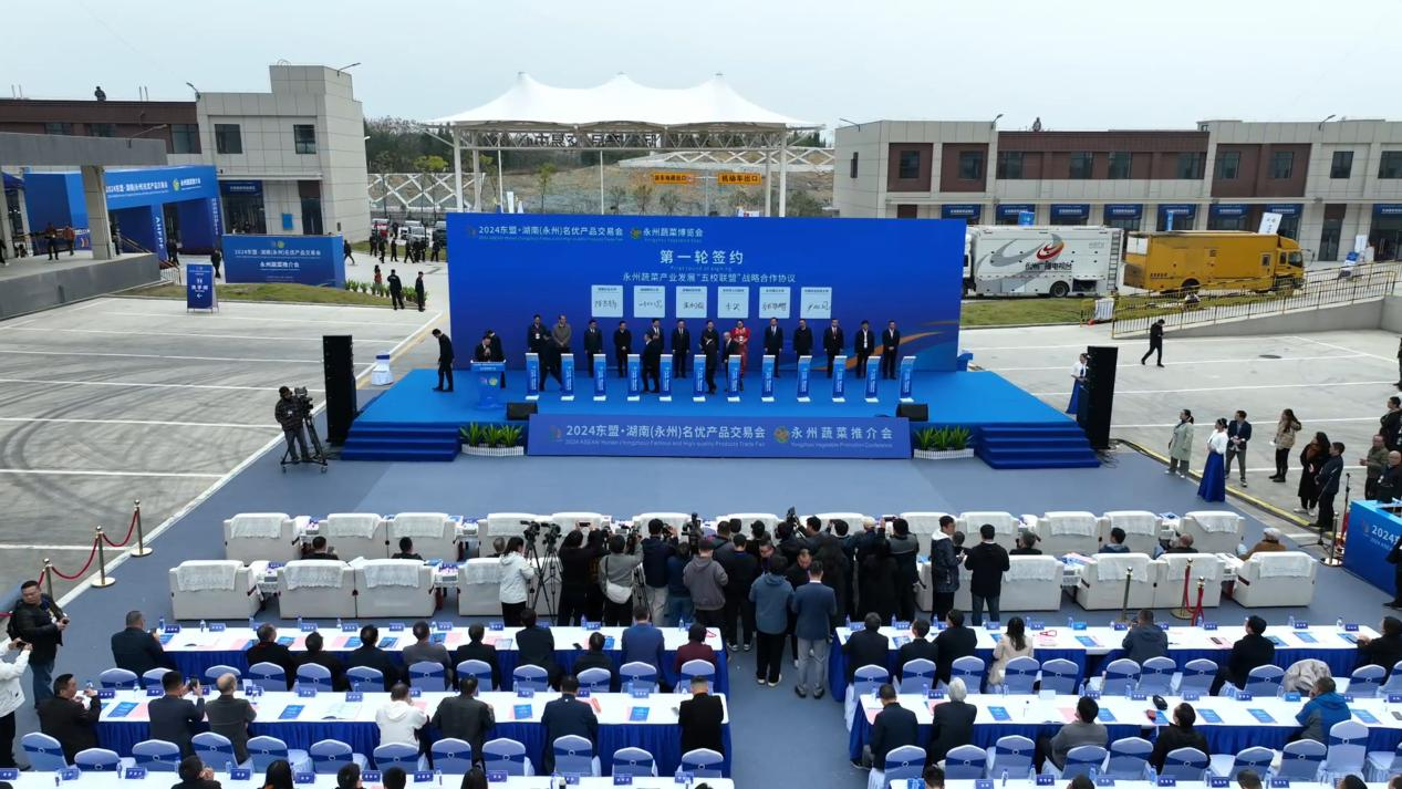 開幕式同期發布了永州暢銷蔬菜品牌、永州名菜、創新金融產品,推介了對接東盟平臺,并為永州市蔬菜出口六項改革服務成果集成示范企業授牌。此次活動共簽約項目149個,涵蓋現代種植、冷鏈保鮮、果蔬加工、交易銷售、農旅觀光、農光互補、金融保險等領域,其中蔬菜銷售訂單中出口訂單14個、銷售金額109億元。