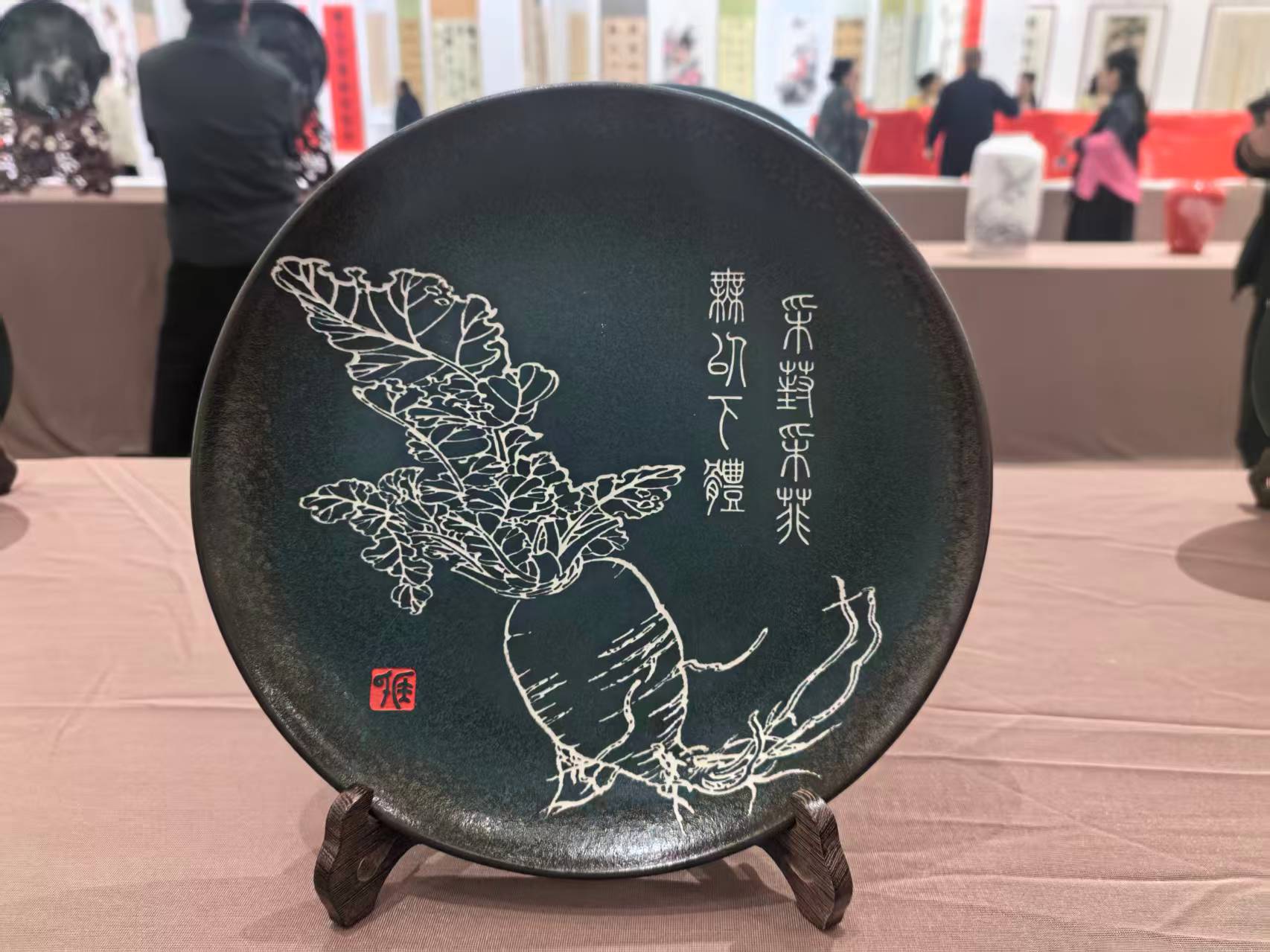 “非遺傳承人用剪紙、刻瓷等方式演繹《詩經》,讓枯燥的文字活了起來,讓我對經典有了更深的理解。” 參觀者胡偉娟的感受道出了眾多人的心聲。專程而來的孫亞楠更是直呼不虛此行:“刻瓷上的文字、油畫里的場景,還有震撼的飛刀表演,這場‘追詩之旅’遠比想象中精彩。”