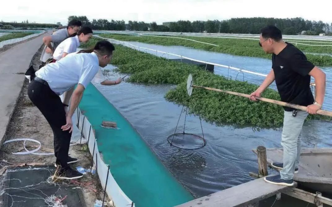 交行江蘇泰州興化支行和當地大閘蟹協會一同調研螃蟹養殖