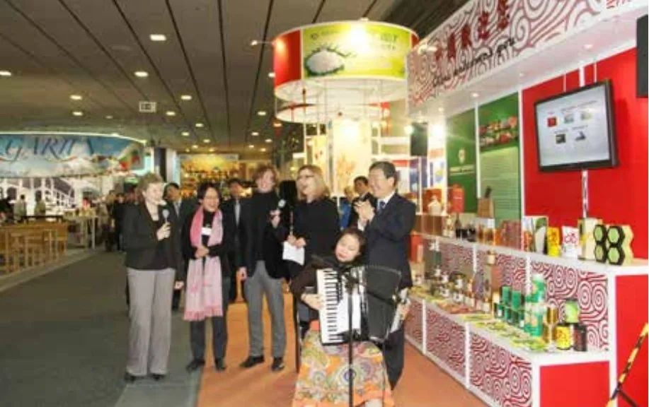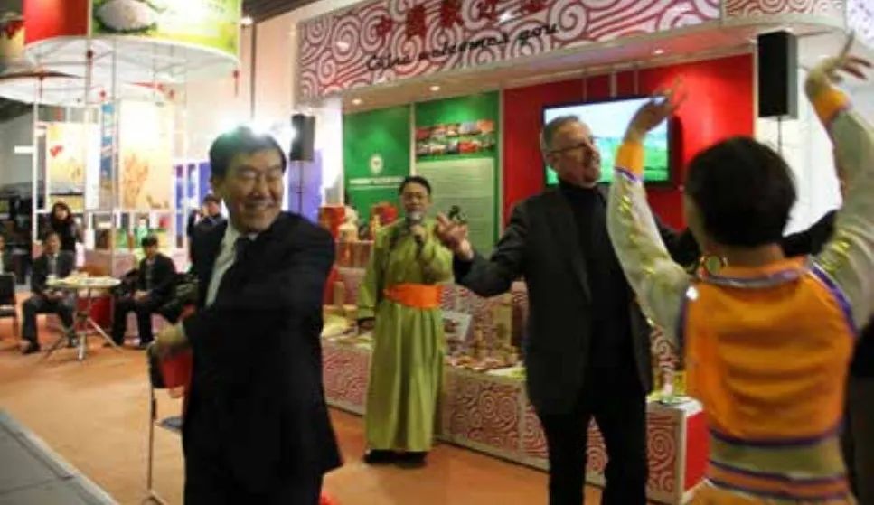 在音樂和歌聲中,中國代表團成員,德國農業部和德國農業協會成員,還有德國觀眾,甚至與中國優質農產品展區鄰近的哥倫比亞等國家的工作人員都加入了我們歡樂的音樂舞蹈行列。中國優質農產品推介“中國日”活動的氣氛達到了高潮。