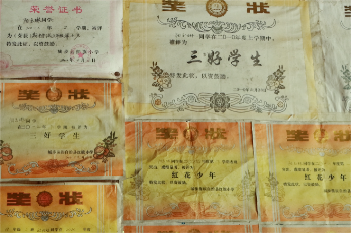陽忠政孫輩們的獎(jiǎng)狀。徐銳聰攝