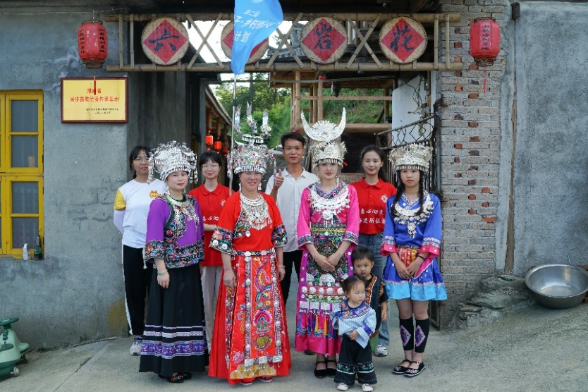 非遺保護(hù)傳承,關(guān)鍵在人。如何加強(qiáng)非遺活態(tài)保護(hù)與傳承,這是師生志愿者們急需思考并解決的問題。為此實(shí)踐團(tuán)成員們以民俗文化為靈魂,借活動(dòng)為載體,積極開展實(shí)地走訪調(diào)研活動(dòng),隨童聲一起聽侗歌,看杉樹,逛鼓樓,看千戶侗寨展非遺魅力。在少數(shù)民族山歌碑林前,了解山歌文化的起源與發(fā)展,感受“山歌皇后”陳巖花生活有歌的人生態(tài)度,體會她懷揣炙熱與愛在稻田間,山林間,課堂間,唱響對這土地的深沉的愛;在東晉古杉群里,身穿民族服飾的小小推介官們向我們講起那神秘古老的民俗故事,被大火侵蝕幾進(jìn)中空的杉樹王竟存活到了現(xiàn)在,或許正如村民所說是它庇佑著當(dāng)?shù)仫L(fēng)調(diào)雨順,山景秀麗;在侗寨鼓樓中,黨支部書記助理劉坤向我們介紹,清朝李宗昉《黔記》中曾記載 “諸寨共于高坦處建一樓,高數(shù)層,名聚堂。”侗寨鼓樓不僅歷史悠久更是侗族文明的象征,侗族人民常常會聚在鼓樓前議事、休閑娛樂,百家宴、唱山歌、慶娘娘、祭杉樹、篝火晚等重大活動(dòng)都會在此展開。