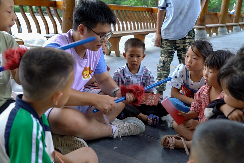 “教育不僅在課堂,在田間地頭更能鍛煉我們的學(xué)生。這是大家學(xué)以致用的天然課堂,也是厚植人民情懷的大課堂。”帶隊(duì)指導(dǎo)老師謝炎伶在開會時(shí)表示。于是20名志愿者們在當(dāng)?shù)卮甯刹康膸椭拢鶕?jù)學(xué)生的需求與實(shí)際情況制定了特色課程,秉持著“趣味課堂+民族特色”的教育模式開展了“重走長征路”思政課、“自找苦吃”勞動(dòng)教育課、“樂動(dòng)大寨,健康隨行”趣味體育課、“心心相繪”美術(shù)課、“走進(jìn)甲骨文”語文課、“童語誦童音”普通話課、“認(rèn)識自我”心理課等課程。巧妙融合大寨社區(qū)少數(shù)民族文化、紅色文化,從理論到實(shí)踐環(huán)環(huán)相扣,全面提升了小朋友們對文化傳承、民族團(tuán)結(jié)、身心健康的興趣與重視程度。