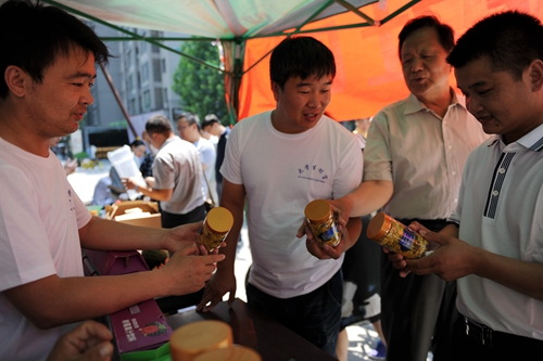 6月18日,由全國(guó)大學(xué)生村官創(chuàng)業(yè)聯(lián)盟組織的大學(xué)生村官農(nóng)產(chǎn)品進(jìn)社區(qū)活動(dòng)首站在北京市中信城社區(qū)舉行,來(lái)自北京、河北、河南、山西、陜西、福建、江蘇等地的40多名創(chuàng)業(yè)大學(xué)生村官參與,50多個(gè)品種的特色農(nóng)產(chǎn)品。