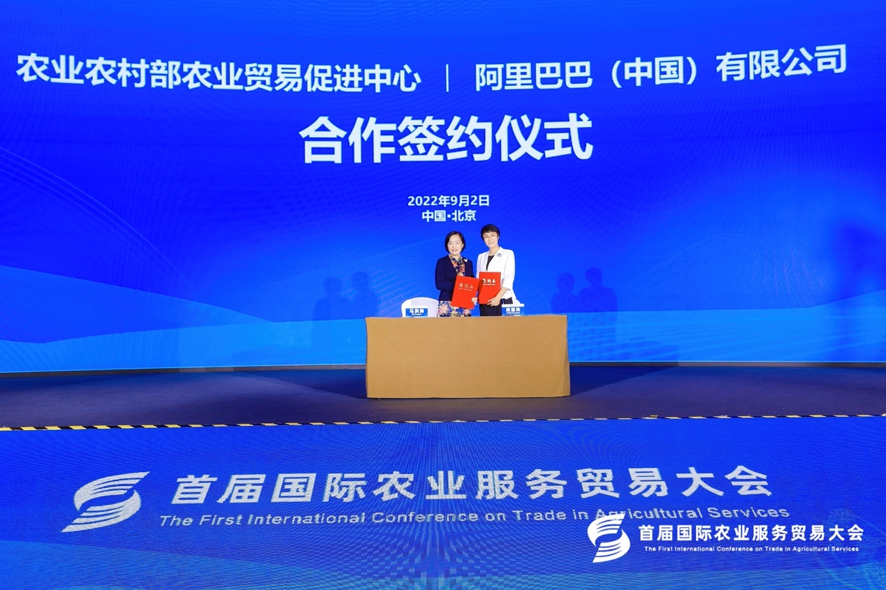 會上,農業農村部貿促中心與阿里巴巴簽約,圍繞“三展一節”活動、“農業貿易智能實驗室”建設、預制菜產業發展、國貿基地建設、農業貿易數字化建設及研究等5項內容達成了合作。
