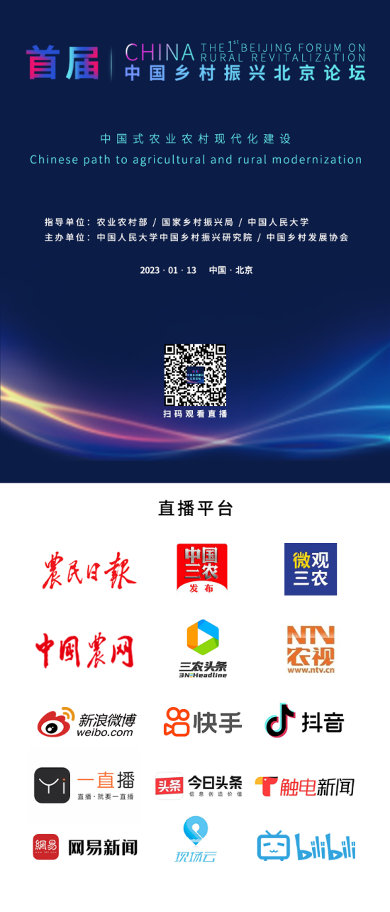 探索鄉村振興新路徑,助推中國式農業農村現代化。2023年1月13日,首屆中國鄉村振興北京論壇。敬請期待!