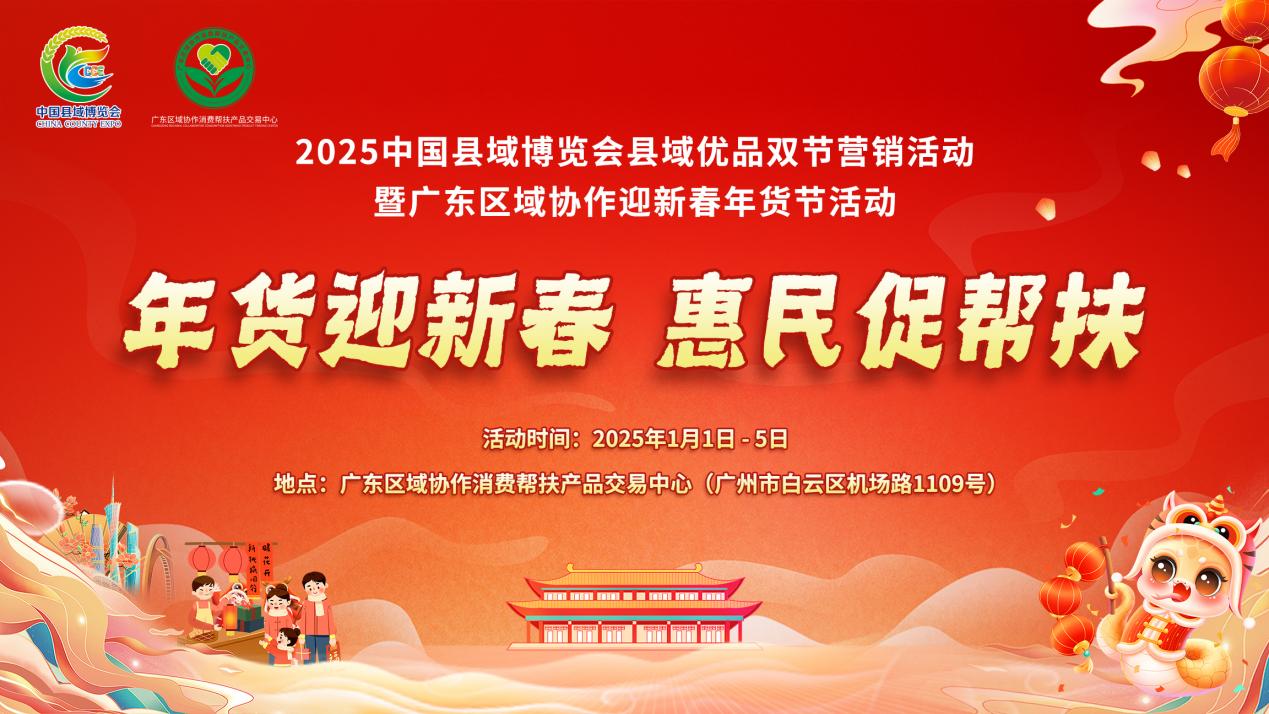 “2025年中國縣域博覽會縣域優(yōu)品雙節(jié)營銷活動暨廣東區(qū)域協(xié)作迎新春年貨節(jié)”將于2025年1月1日至5日在廣東區(qū)域協(xié)作消費幫扶產(chǎn)品交易中心舉行。