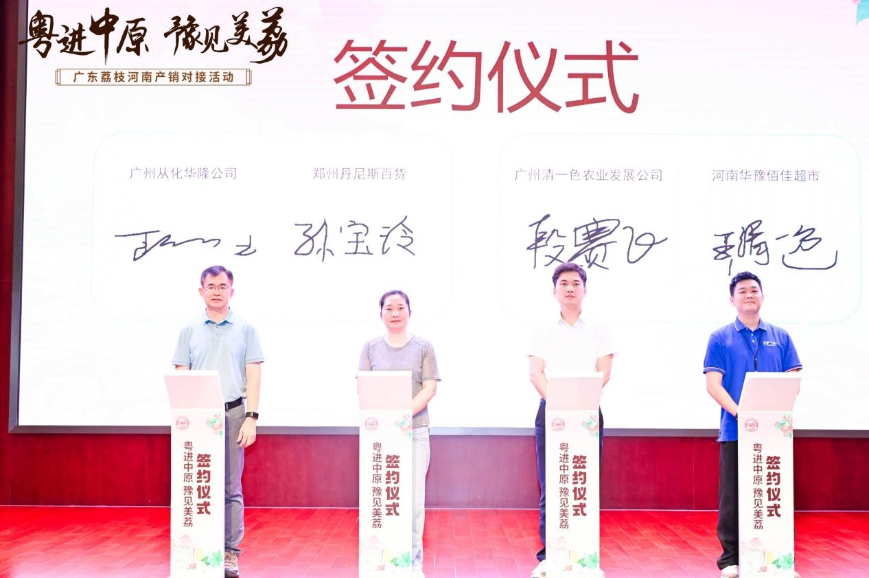 廣東荔枝企業(yè)代表與多家河南知名企業(yè)簽訂購銷意向合作協(xié)議。