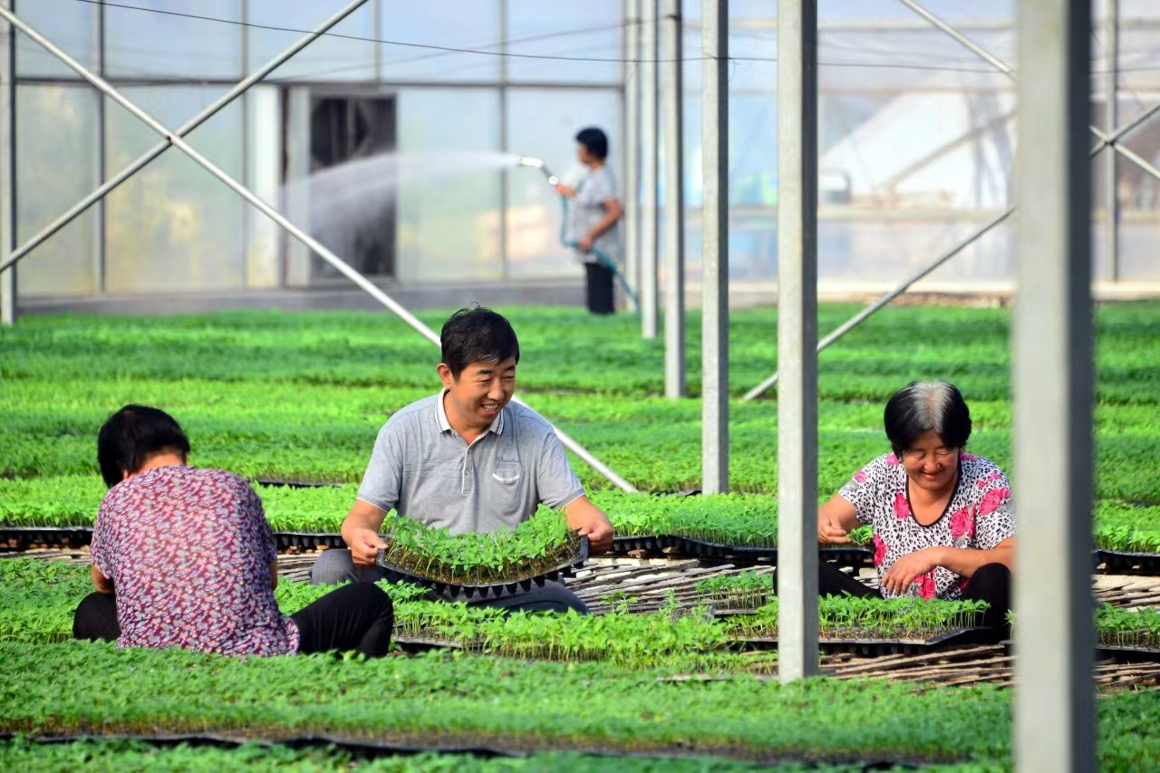 大棚平地起,“誠贏”奔未來。耿店新村黨委帶領黨員群眾創新探索、真抓實干,實現了集體寬裕、群眾富足。成立現代化溫室育苗場,建設占地6000平方米的綠源蔬菜批發市場,引進現代化農業高科技示范項目——綠隆農業科技有限公司,建成高標準溫室蔬菜大棚近700座。2023年,耿店新村流轉土地3000多畝、注資5000萬元成立誠贏農業發展集團,建設年產三萬噸蔬菜加工冷鏈倉儲項目,延長產業鏈條,形成了從買苗到賣菜不用出村的耿店種植模式,打響了“耿店”“棚二代”品牌。