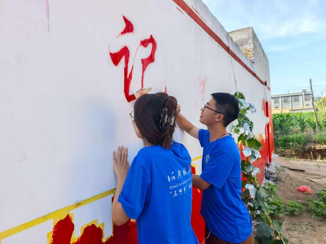 實踐期間,隊員們以“不忘初心,牢記使命”、“滿倉皆是喜,笑談好年景”為主題,完成兩幅墻繪。
