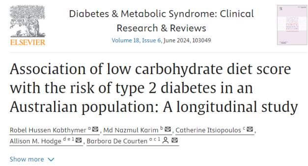 這項研究基于墨爾本協作隊列研究(MCCS),分析了39185名參與者的數據,研究人員通過低碳水化合物飲食評分(LCD)來評估飲食模式與2型糖尿病之間的關聯。