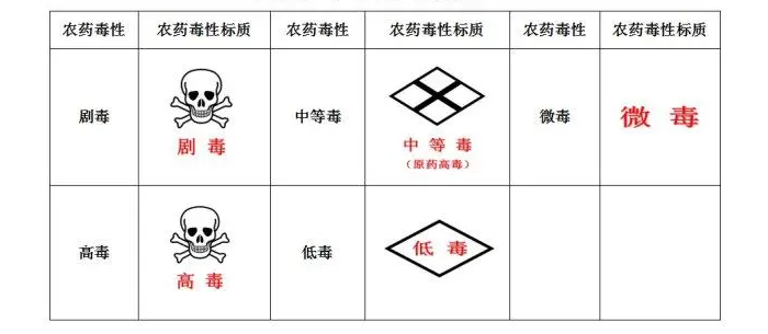 農藥包裝上,一般都會明確標注該農藥的毒性。常見的農藥毒性分為5種,分別為微毒、低毒、中等毒、高毒、劇毒。