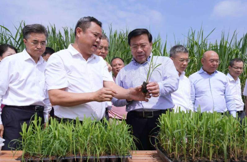 廣西是全國重要的蔗糖主產(chǎn)區(qū)。在來賓市興賓區(qū)糖料示范基地,韓俊實地查看田間糖料蔗長勢,詳細詢問品種研發(fā)應(yīng)用、機械化收獲、生物防治、收購價格和種植收益等。他強調(diào),要抓好甘蔗種質(zhì)資源保護,加快培育高產(chǎn)高糖品種,加大適用機收裝備推廣應(yīng)用,穩(wěn)定面積、提高產(chǎn)量,穩(wěn)定蔗農(nóng)種植收益,守好全國人民的糖罐子。