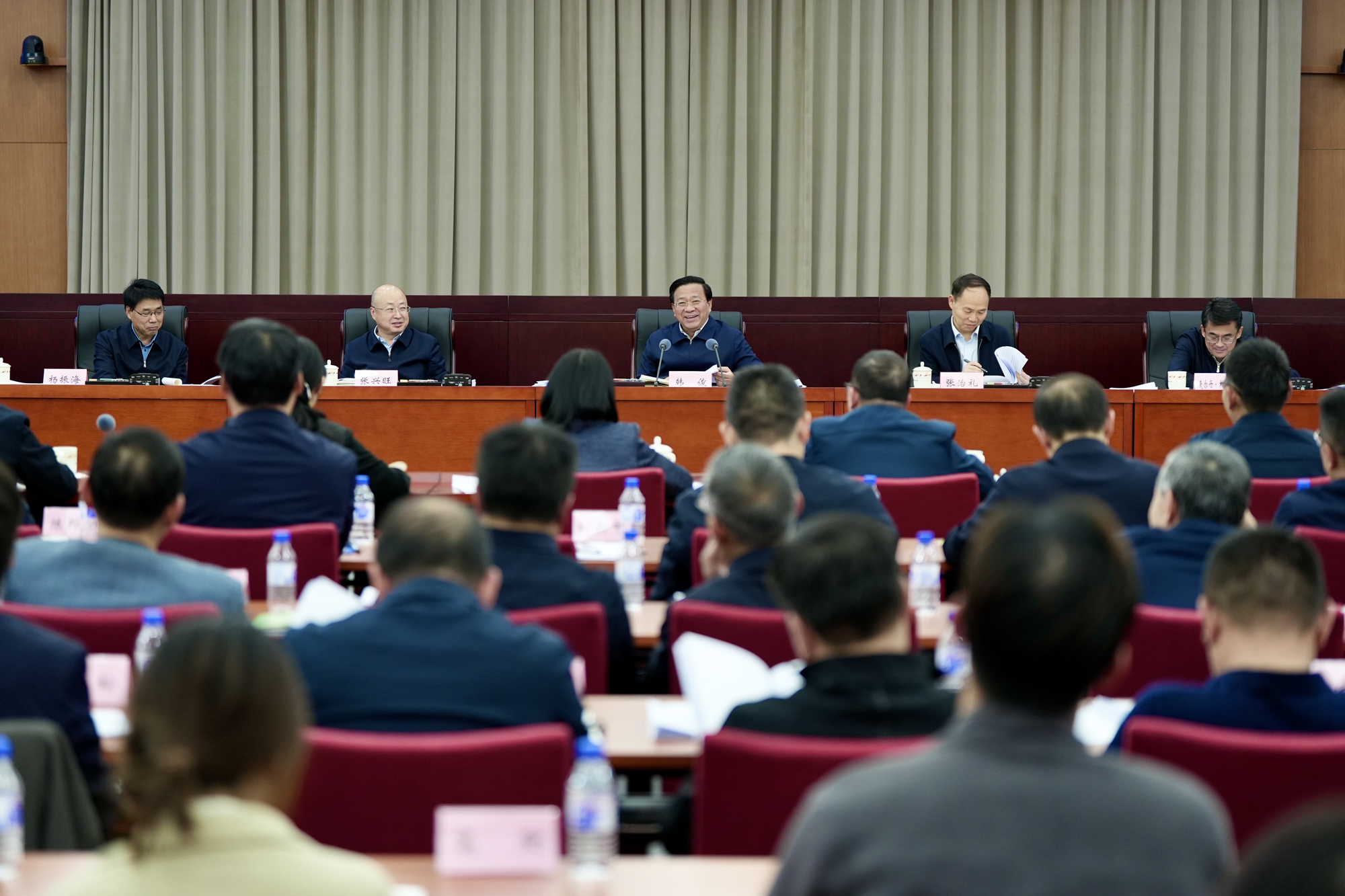 韓俊強調,要把“忠專實”“勤正廉”的要求體現到選人用人的實際工作中,進一步做深做實年輕干部政治素質考察,突出實干實績導向,嚴把紀律作風關,推動廣大干部始終堅持對黨忠誠、專業專注、求真務實,始終堅持勤勉盡責、弘揚正氣、廉潔奉公,真正把規矩立起來、紀律嚴起來、作風實起來、形象樹起來、責任擔起來。要進一步完善年輕干部跟蹤培養機制,加強“傳幫帶”,安排優秀年輕干部承擔重要任務和重大專項工作,培養更多懂專業、善管理的復合型干部。要健全年輕干部日常發現、動態優化、適時使用機制,進一步加大優秀年輕干部選拔使用力度,讓更多優秀年輕干部脫穎而出,加快形成素質高、結構優、活力足的合理梯隊。要堅持嚴管與厚愛相結合,做實做細日常監督管理,及時主動了解年輕干部的思想動態,選樹表彰優秀年輕干部先進典型,進一步健全容錯糾錯機制,提振年輕干部干事創業精氣神。