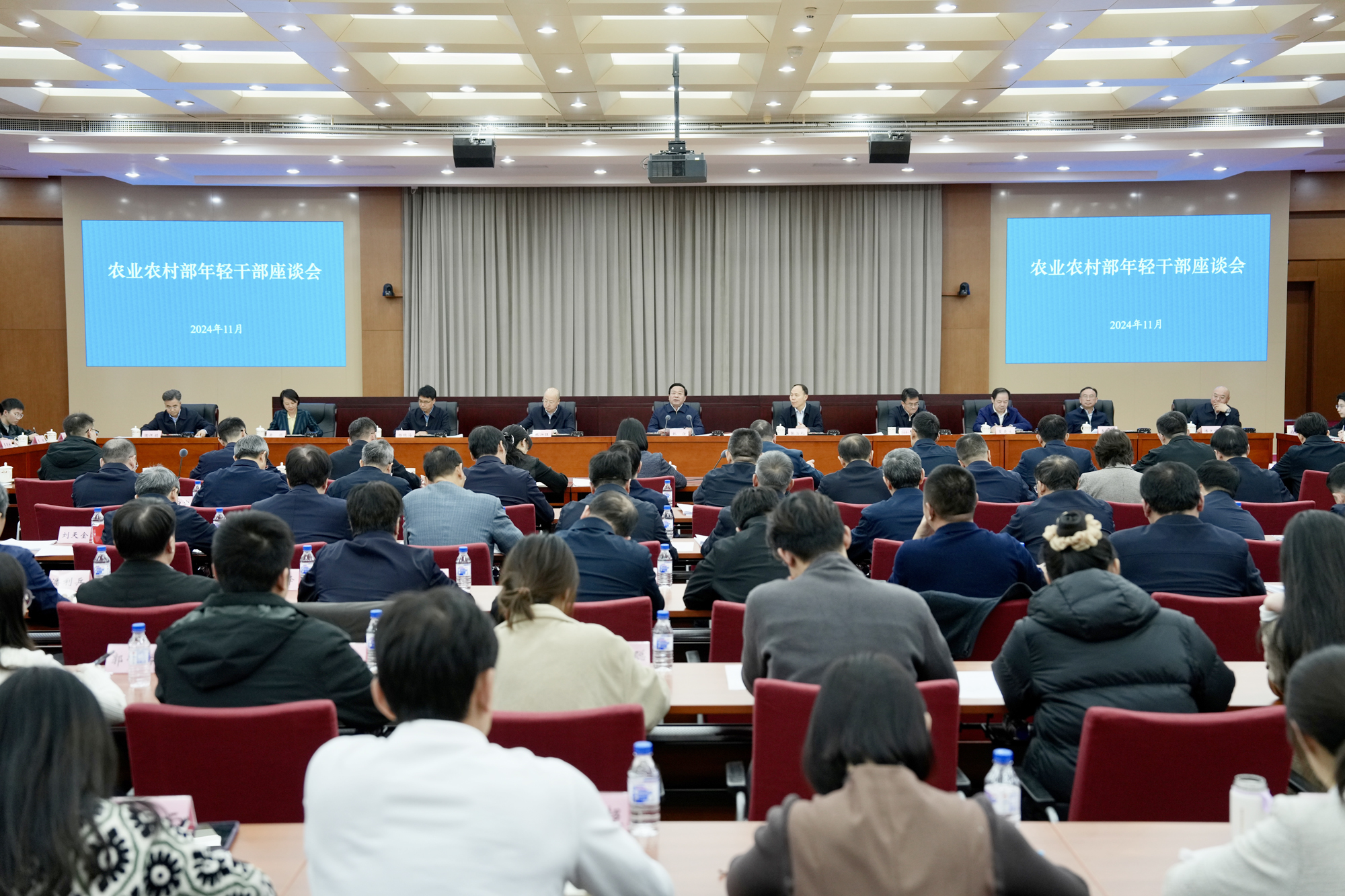 11月26日,農業農村部黨組書記、部長韓俊主持召開年輕干部座談會并講話。會議強調,要認真學習貫徹習近平總書記關于培養選拔優秀年輕干部的重要指示精神,落實全國組織工作會議部署要求,堅持選、育、管、用一體謀劃,全面加強部系統年輕干部隊伍建設,努力做到早發現、早培養、早使用,推動年輕干部挑重擔、扛大梁、快成長,打造政治過硬、紀律過硬、本領過硬、作風過硬的干部隊伍。