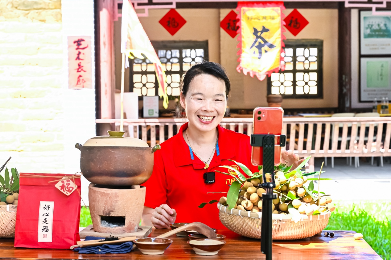 在此次農事定向大賽的途徑點,主辦方特別設置了廣東鄉村直播大賽高州預賽區,來自全省各地16名鄉村主播在知青印象園一展才藝,逐一以賽興農推介高州龍眼,展現廣東“村播”新風采。