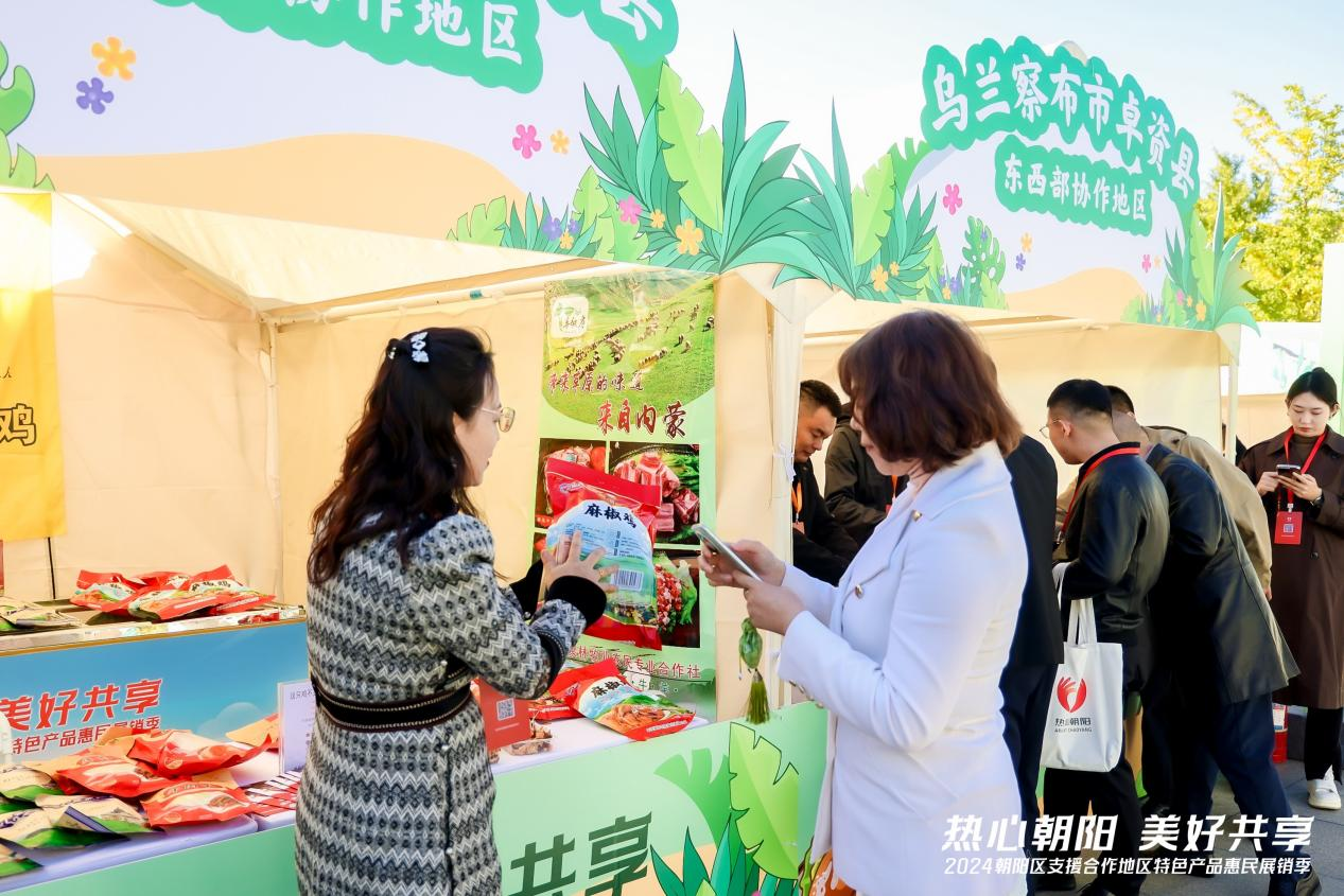 啟動儀式現場舉辦了精彩紛呈、各具特色的文藝演出,點燃了現場觀眾的熱情。來自幫扶地區的40余家企業展銷了綠色優質的農副產品和極具特色的手工藝品,肉質緊實的內蒙古牛肉干,新鮮肥美的密云水庫魚,軟糯可口的“后旗紅”土豆,養生必備的十渡蜂蜜,酸甜多汁的河南石榴,非遺的潞城布老虎,獨特的烏蘭哈達火山文創……給市民帶來了一場視覺和味覺盛宴。活動吸引到了抖音、小紅書等平臺的眾多自媒體達人現場打卡,“朝陽群眾”“北京朝陽WOW”等朝陽區官方賬號也對活動現場進行了推介。