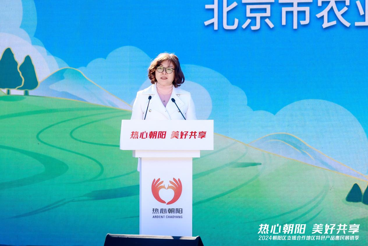 北京市農業農村局支援協作處處長、二級巡視員孫燕清在致辭中表示:“在支援合作工作的具體實踐中,我們深知讓脫貧地區的產業興旺起來、讓脫貧群眾的‘錢袋子’鼓起來的重要意義。此次朝陽區開展的展銷季活動,不僅標志著在創新支援合作模式上的又一重要進展,更是積極響應并深入落實尹力書記指示要求和‘消費幫扶助農增收行動’的生動實踐”。