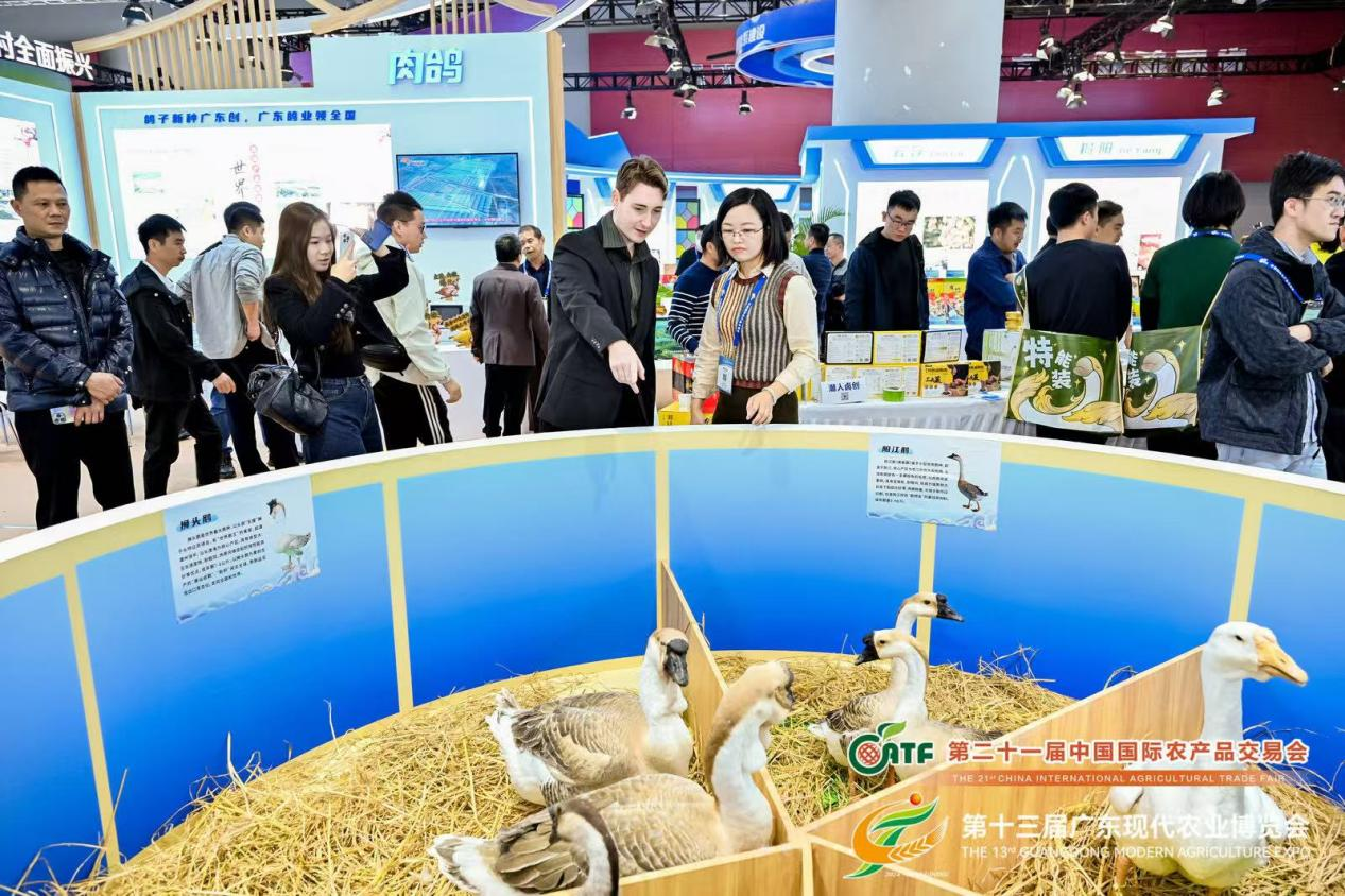 在茂名市展區,集中展示了茂名荔枝、龍眼、三華李、化州化橘紅、羅非魚等特色優質農產品;東莞市展區打造東莞特色產業印象,展示的是“三棵樹”(東莞莞香、荔枝、香蕉)、“兩條魚”(筍殼魚、觀賞魚)、“一桌菜”(預制食品)等特色農產品;“美食之鄉”汕頭帶來了橄欖、茶葉、牡蠣、魚丸、牛肉丸、獅頭鵝、醬腌菜、潮汕鹵味等一系列地方特色產品……這一個個叫得響、品質佳、賣得好的“粵字號”品牌,共同構成了廣東現代鄉村產業體系。