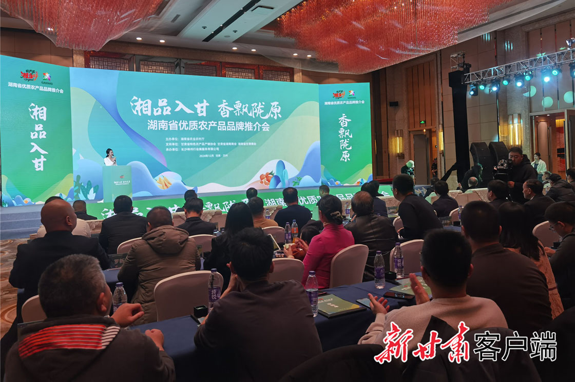 新甘肅客戶端蘭州 12月3日下午,湖南省農業農村部門攜來自“魚米之鄉”的優質農產品,在蘭州舉辦湘味入甘品牌推介會,共謀甘湘農業合作發展,并向我省供應鏈企業、商超代表、采購商就甘湘兩省農產品品牌運營、農產品產銷合作等事項進行推介。
