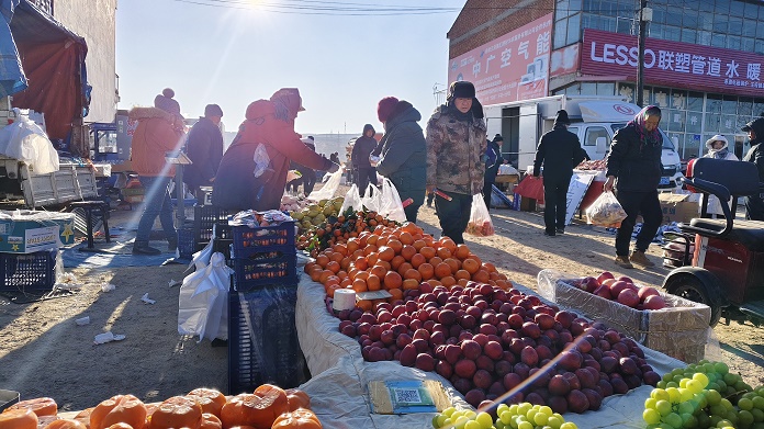 1月17日,恰逢松山區王府鎮敖包村集市開市,一大早村民們就從四面八方趕來購置年貨。集市上此起彼伏的叫賣聲、琳瑯滿目的商品、熙熙攘攘的人群,烘托出濃厚的節日氣氛。