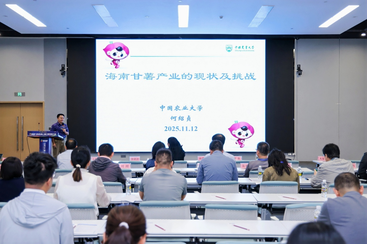 農業農村部甘薯生物學與生物技術重點實驗室副主任、北京市糧食作物創新團隊崗位專家、海南地瓜資源綜合利用崗位專家、中國農業大學何紹貞教授應邀做題為“海南甘薯產業的現狀與挑戰”的主旨報告,分享了海南甘薯產業發展的現狀、面臨的挑戰和應對的策略,通過政產學研用深度融合,提升海南甘薯產業的核心競爭力與市場影響力,助力構建海南自貿港甘薯產業的可持續發展體系。