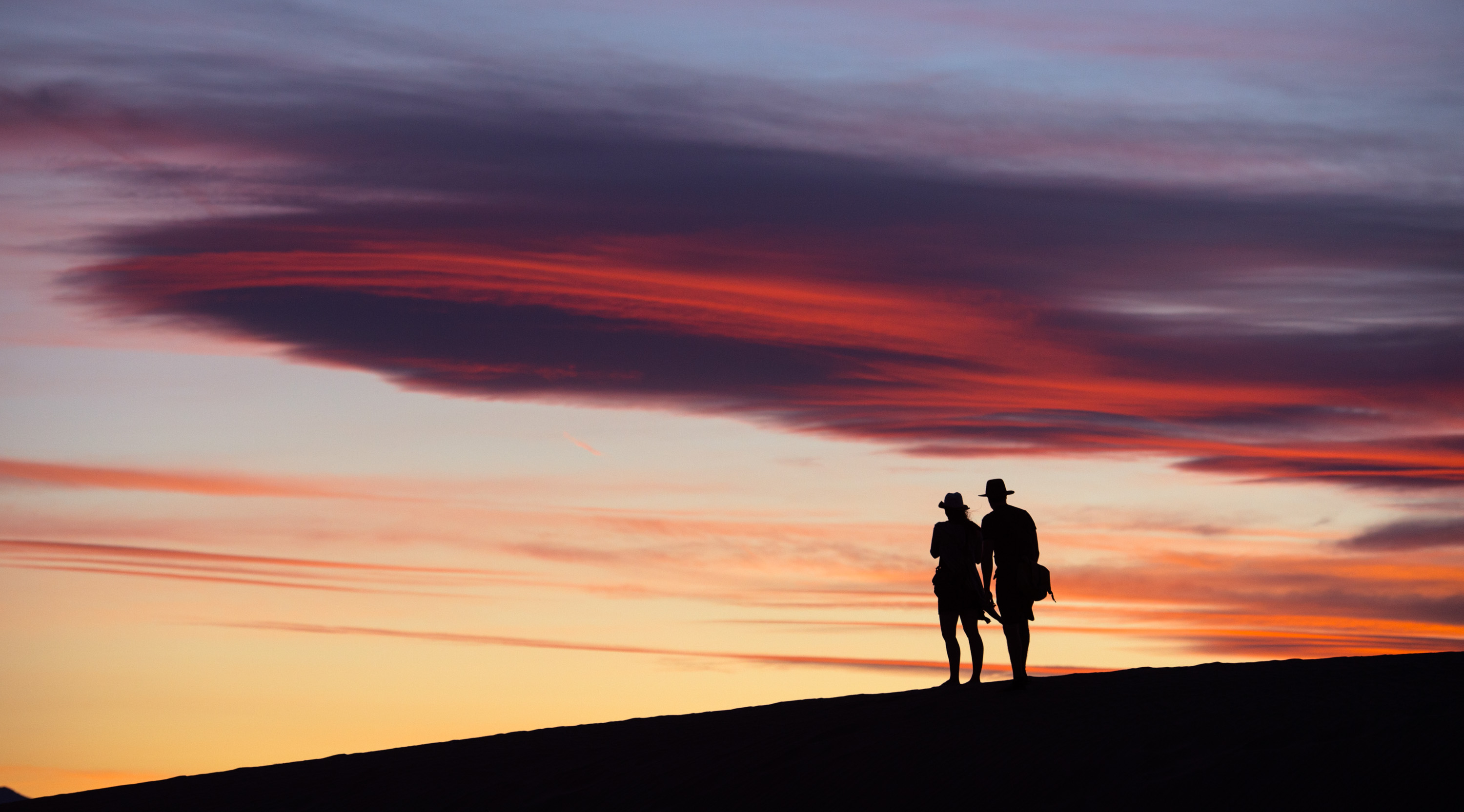 4月21日,在美國死亡谷國家公園內,一對情侶觀賞晚霞。死亡谷國家公園位于美國加州和內華達州的沙漠谷地,是北美洲最低、最干旱的地區。炎熱干旱的氣候曾經使這里成為淘金客的葬身之地,“死亡谷”因此得名。億萬年的地殼運動使這片區域薈萃了鹽湖、盆地、沙漠、戈壁以及山峰等多姿多彩的地貌環境。死亡谷于1994年成為美國國家公園。新華社記者楊磊攝
