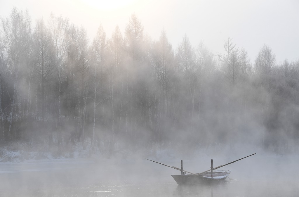 庫爾濱是鄂倫春語“漁場”的意思。庫爾濱河發源于小興安嶺北麓,自南向北流經黑龍江省遜克縣。由于庫爾濱河上游建有水電站,河水經過水輪機組后溫度升高,再遇到嚴寒天氣,便形成河水幾十里不凍,而岸上霧凇成片的美景。
