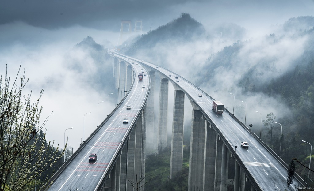 4月4日,一場春雨過后,位于湖北省恩施土家族苗族自治州境內(nèi)的滬渝高速泗渡河大橋周圍云霧繚繞,宛如仙境。