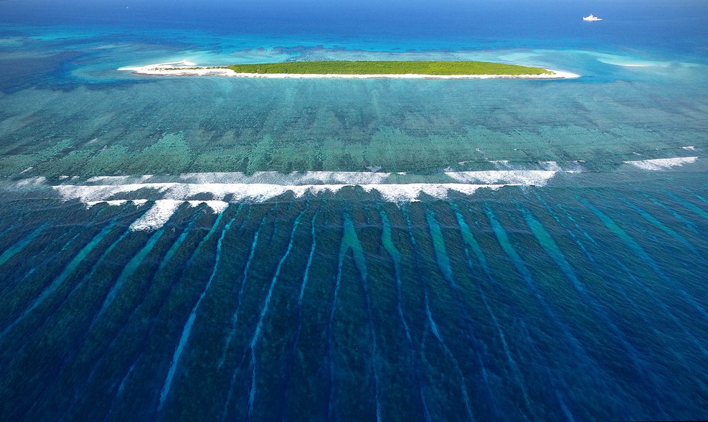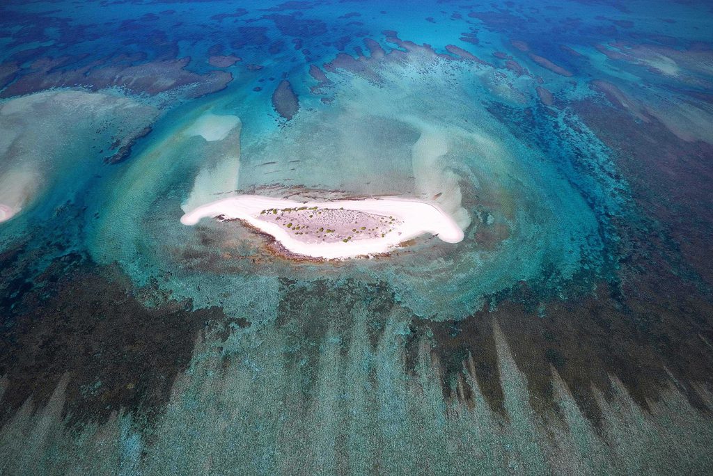 這是位于西沙宣德群島的北沙洲,周圍的礁盤形似一只巨大的水母(4月25日攝)。