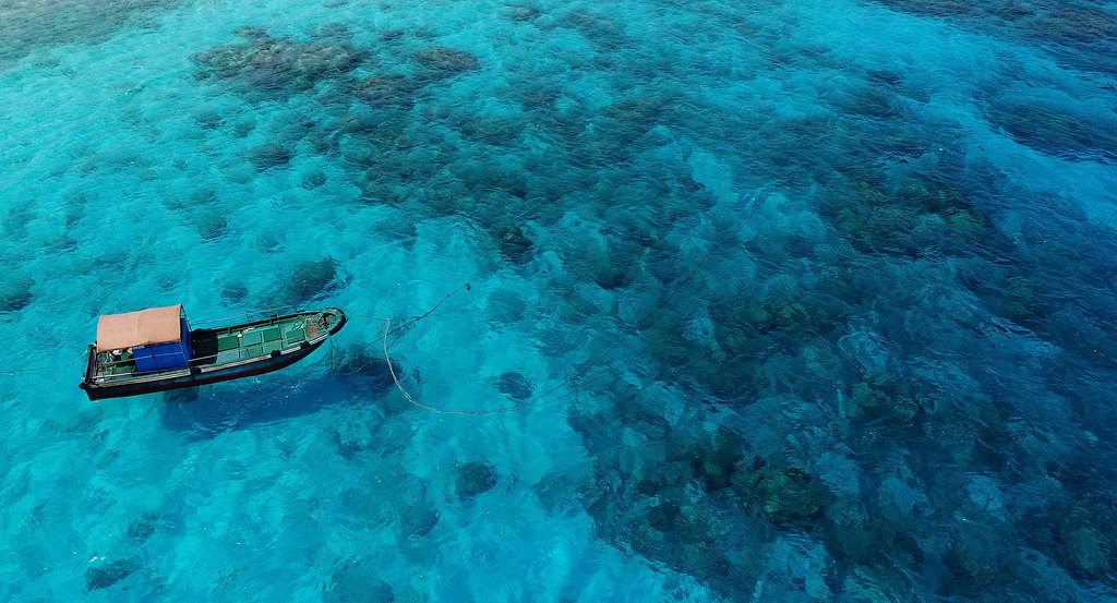 這是西沙永樂群島的甘泉島附近的海面(4月23日攝)。