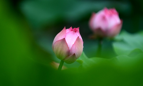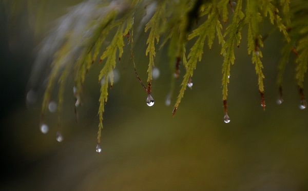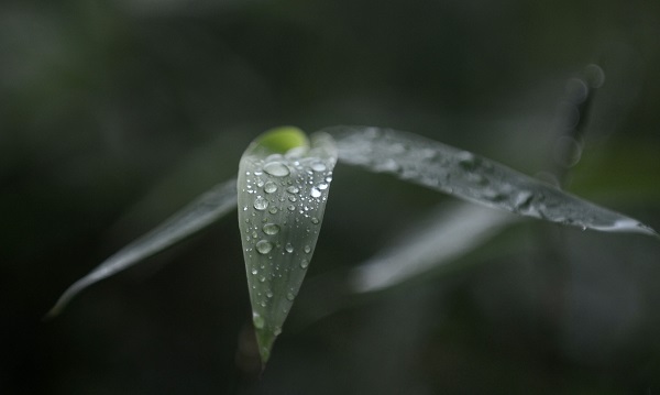 9月6日,揚州個園,雨露懸掛葉片之上,晶瑩剔透。